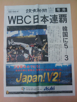 今日はずっと仕事で缶詰になっており、テレビは勿論ネットも見ることが出来ませんでしたが、WBCの号外を見て、疲れも吹き飛んでしまいました!