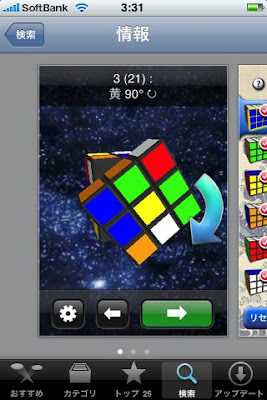Appleガジェット・PC・ソフトウェア ルービック・キューブを解いてくれるiPhoneアプリCubeCheater 2009年9月23日 156gta こちらが、ルービックキューブの解き方を教えてくれるiPhone アプリケーション、CubeCheaterです。 どのように解いてくれるか? こちらの動画をご覧下さい ということで、どうしてもルービックキューブを解く事のできない方は是非、iPhoneやiPod touchにインスコしてみてください。 CubeCheaterのダウンロードはこちら→